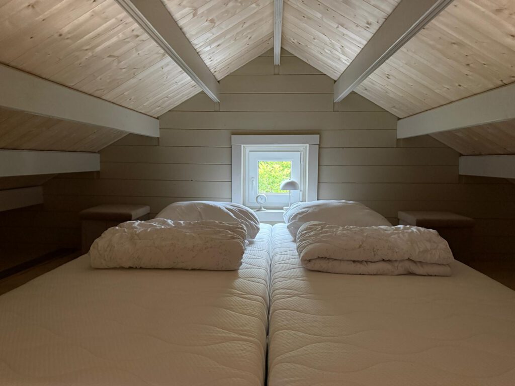 -2-persoons bed (deelbaar op aanvraag) op de bovenverdieping (toegang met trap)